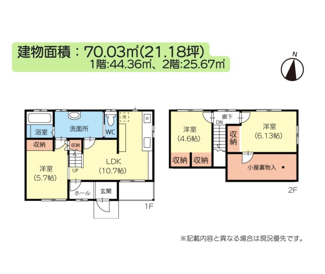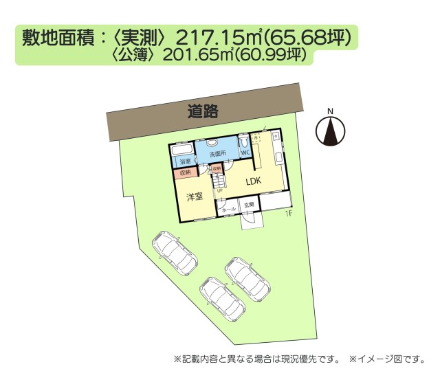 土地面積 | 217.15m²(実測)/65.68坪 | 建物面積 | 70.03m²/21.18坪 |